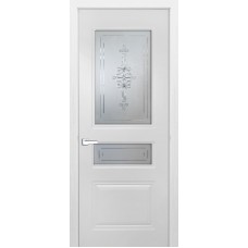 Дверь с ПВХ покрытием Эмма 60 ДО (Софт Белый, Гравировка)